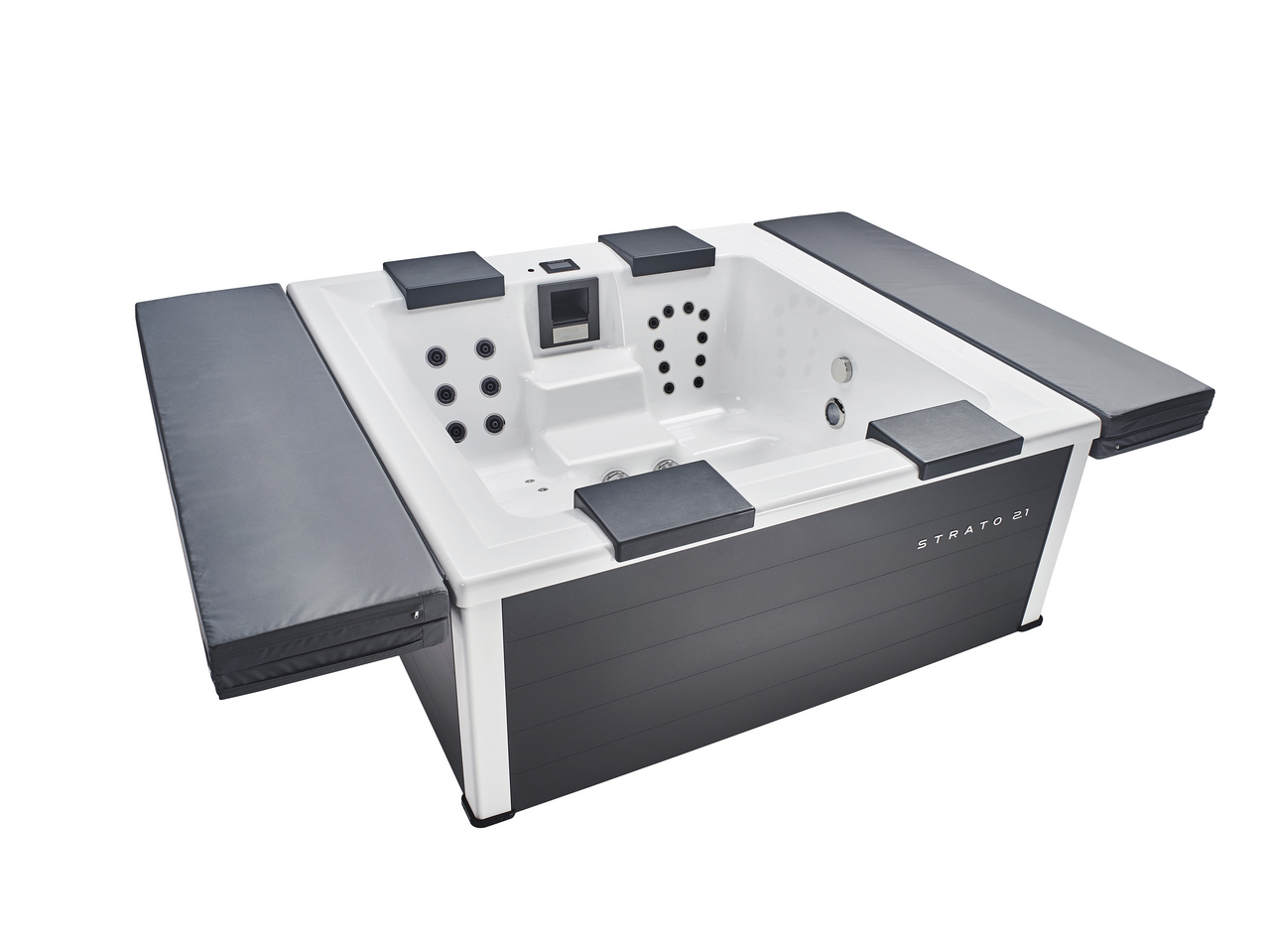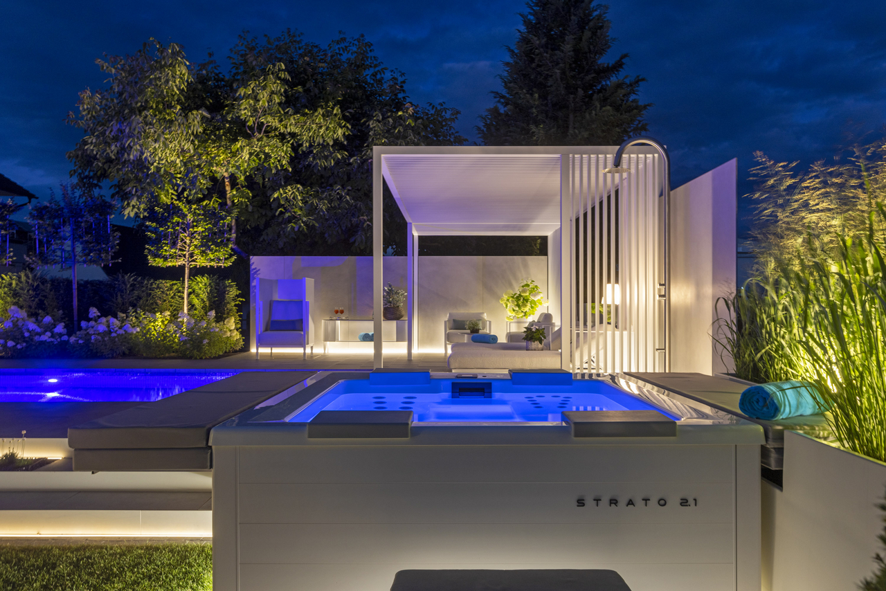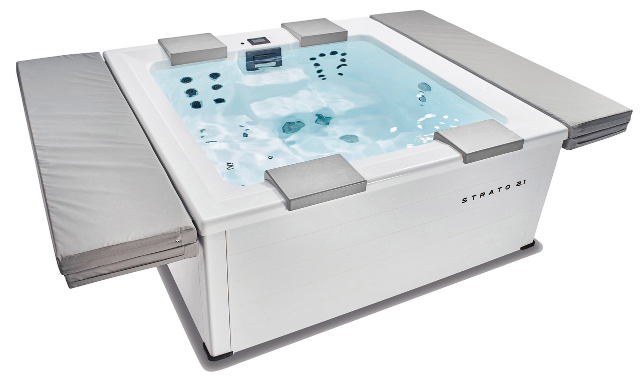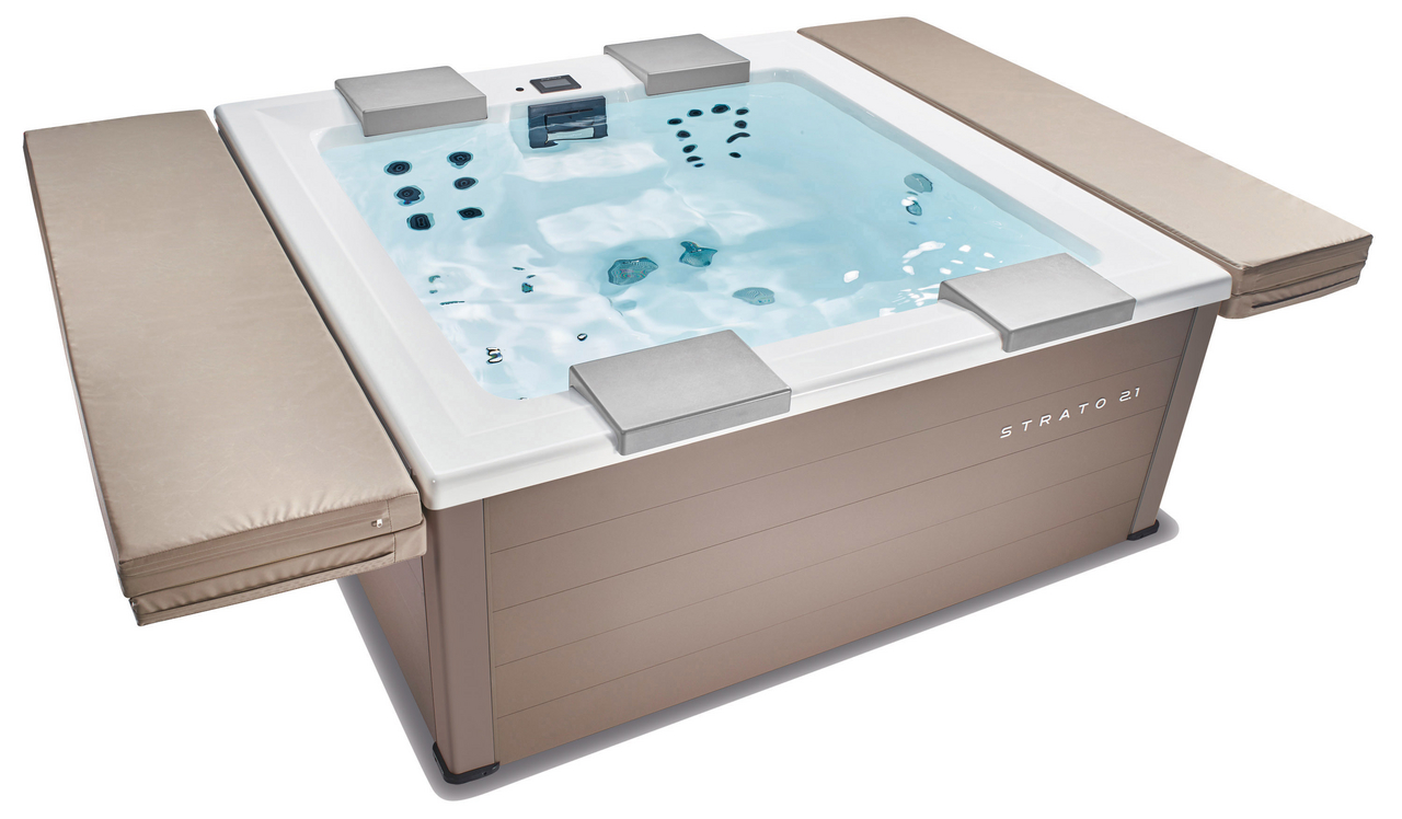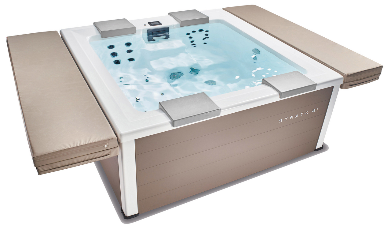 The Strato 2.1 and the new Strato 2.4 whirlpool with 5 seats – portable whirlpools with the maximum of contemporary design.