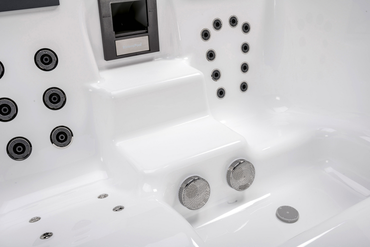 The elegant, modern, and linear design promotes this pool series to a highlight of your bathroom. The convenient central entry steps, the smart jet equipment and the sophisticated massage areas ensure pure wellness.